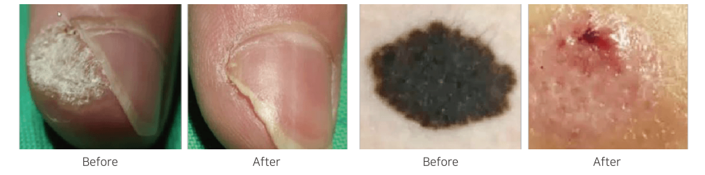 CO₂ laser umožňuje precízne a kontrolované odstránenie vybraných kožných útvarov s minimálnym poškodením okolitého tkaniva.